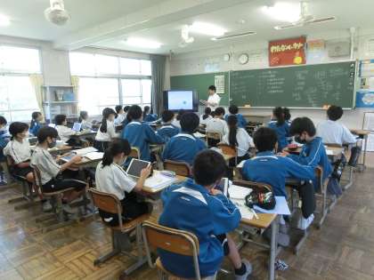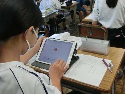 学習用タブレットのアプリを用いて、楽しみながら学んでいます。まさに「熱中」しています。