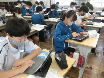 学習用タブレットのアプリを用いて、楽しみながら学んでいます。まさに「熱中」しています。