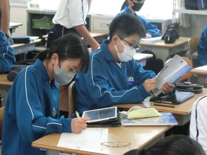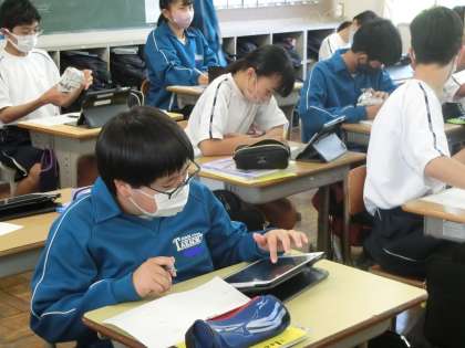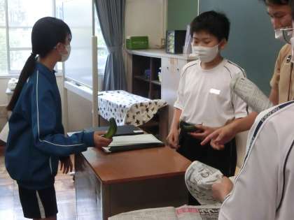 他のグループの発表を聞いて新しい知識がさらに増えました。最後は、教科担任よりキュウリのプレゼントをもらっていました。