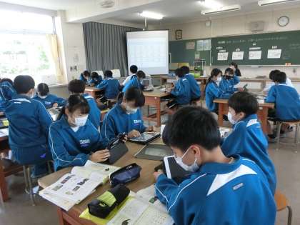 「取り扱い表示の意味と衣服を長持ちさせる方法をまとめよう」をテーマに調べ学習が行われていました。