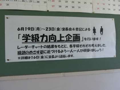 「『学級力向上企画』を行います!」と書かれた掲示物が貼り出されました。