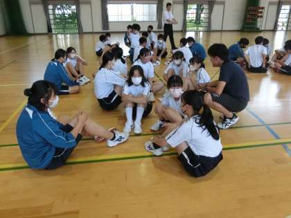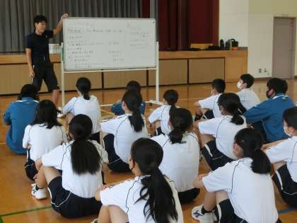 バスケットボールの単元で、「シュートにつながるボール回しを工夫しよう」をテーマに学習が進められていました。