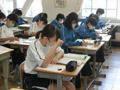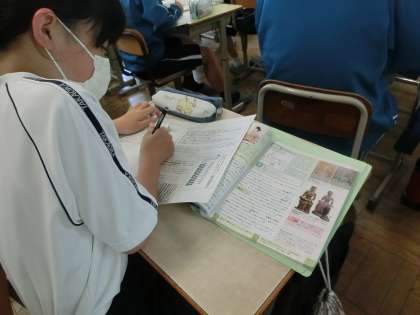 昨日の1年2組の社会・歴史分野の授業の様子です。