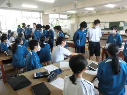 幼児の生活と家族の単元で、「幼児の頃にした遊びには、どんないいことがあるのだろう?」をテーマに、グループで調べたことを発表し合っていました。