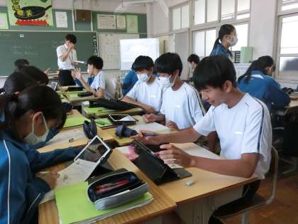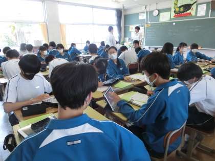 昨日の3年5組の英語の授業の様子です。