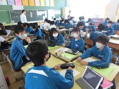 昨日の3年5組の英語の授業の様子です。