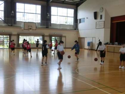 バスケットボールの単元で、「仲間と協力して戦術を考え、つながりのあるプレーをしよう」をテーマに活動が進められていました。