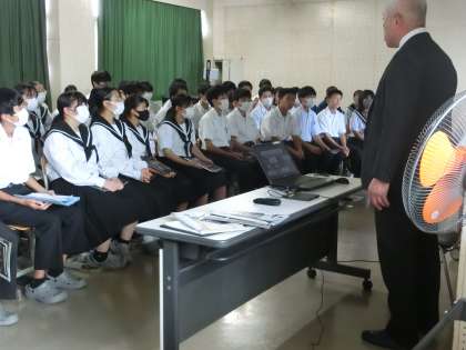 6/24 いよいよ実感 3 公開日 2023/06/24 更新日 2023/06/24 各学年から 昨日、3年生と保護者を対象に行われた「高校説明会」の様子です。 公立高校3校、私立高校2校、専修学校1校の計6校の先生方をお招きし、各校の特色等をお話しいただきました。 自分の進路決定・実現に向けて、いよいよ現実味が増してきました。話を聴く3年生の様子からもその意気込みが伝わってきます。 お忙しい中、ご来校いただいたご家族の方々にも心から感謝いたします。