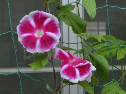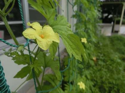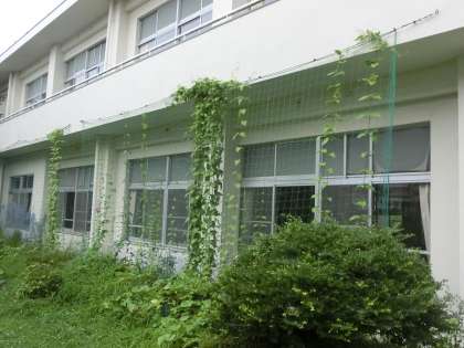 1年生の教室の東側の花壇には、ツル科の植物が植えられています。アサガオやキュウリなど、夏場の強い日差しを遮る「緑のカーテン」としてです。梅雨の時期真っ只中で、日々の成長の様子も楽しみの一つとなっています。