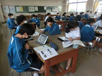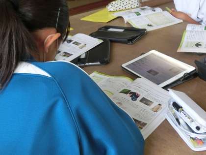 「めざせ! 洗濯名人!」をテーマに調べあげた事柄を発表する授業が行われていました。