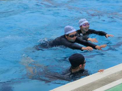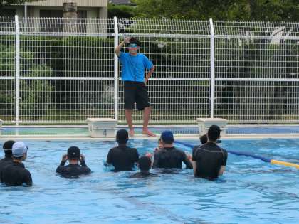 すべての泳法の基本となる「けのび」のテストが行われていました。