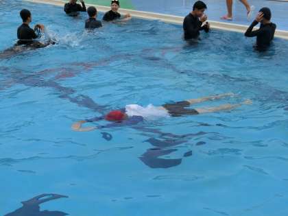 すべての泳法の基本となる「けのび」のテストが行われていました。