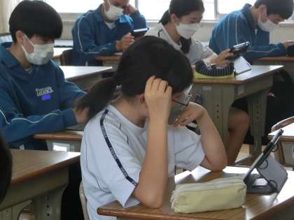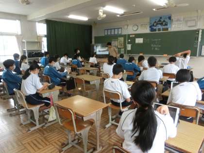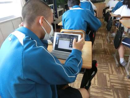 情報活用の学習で、「いい街『若林地区』をどう発信していく?」をテーマにインスタグラムづくりが行われていました。
