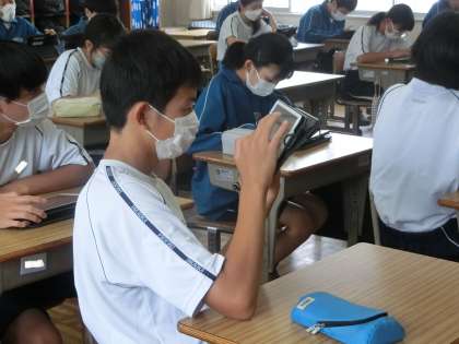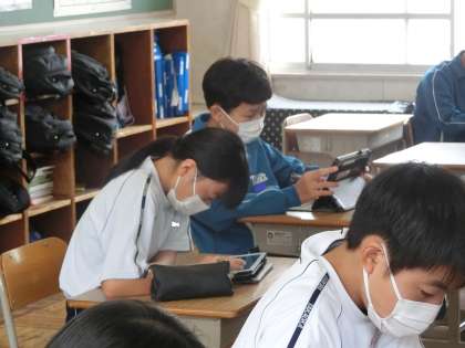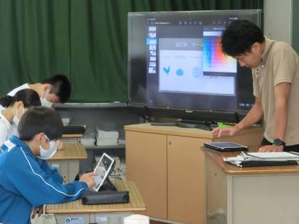 情報活用の学習で、「いい街『若林地区』をどう発信していく?」をテーマにインスタグラムづくりが行われていました。