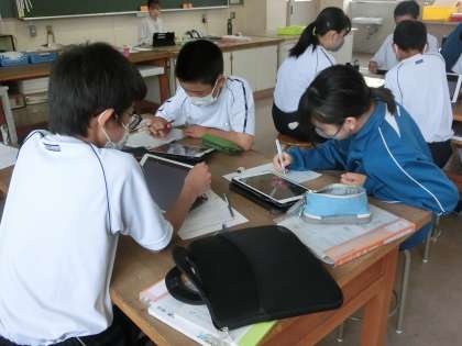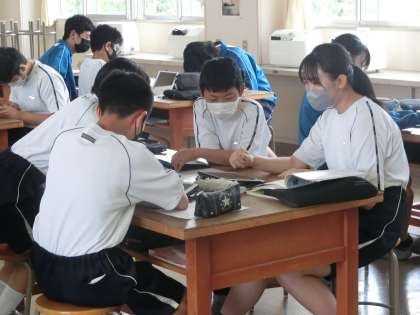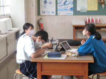 次回の授業で発表する予定の「朝食に関するプレゼンを完成させよう」をテーマに活動が進められていました。