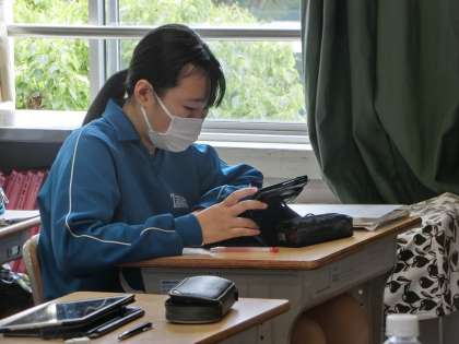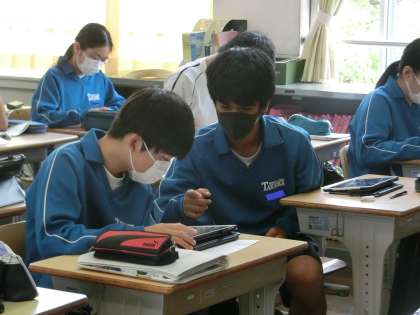 文章の種類について学び、「修学旅行」をテーマにそれぞれの表現の仕方を意識した文章を考えていました。