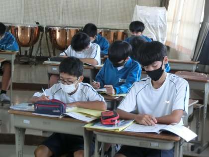 バッハが作曲した「フーガト短調」を聴き、テーマに迫る鑑賞を行っていました。