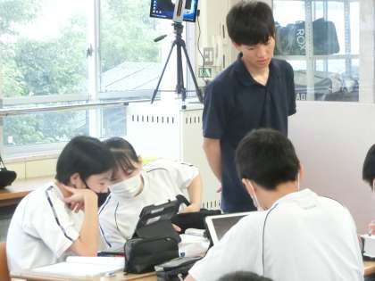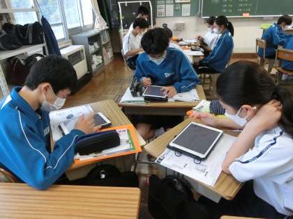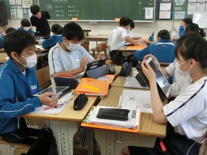 グループごとに予想を立て、学習用タブレットを使って様々な角度から調べ上げていきます。本数だけでなく、根拠となる事柄もしっかりと調べていました。