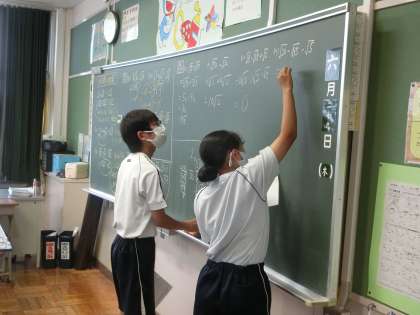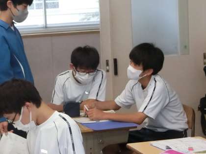 一問ずつ仲間と確認をし合いながら、解はもちろん、解き方の確認まで行っています。しっかりと自分で考えながらも、長く時間をかけすぎないよう、テンポよく問題を解いていました。