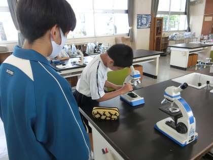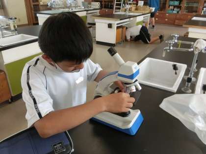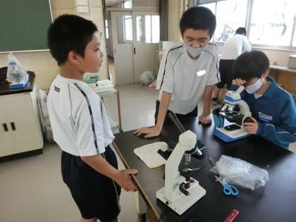 顕微鏡の使い方を学び、身近なものを顕微鏡で観察していました。