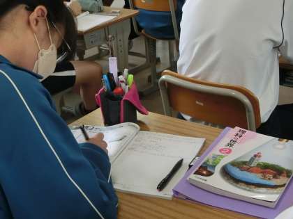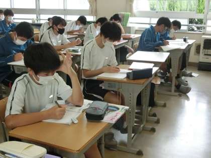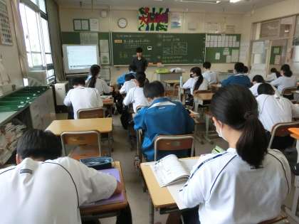 生物のからだのつくりとはたらきの単元で、「葉の蒸散と吸水量の関係についてまとめよう」をテーマに学習が進められていました。