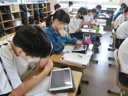 生物のからだのつくりとはたらきの単元のジャンプ課題として、「学習したことをまとめ、追究課題をさらに見つけて、もっと調べてみよう」をテーマに、学習が進められていました。