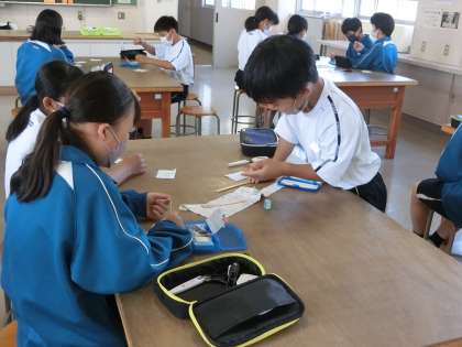裁縫の学習で、玉結びの仕方を学んでいました。