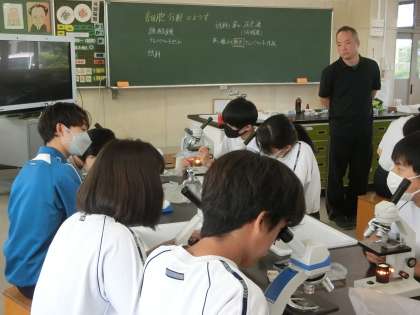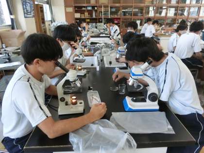 一人1台の顕微鏡が用意され、じっくりと観察することができています。