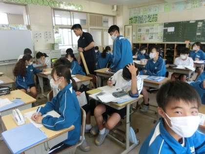 7/4 学習の積み重ね 3 公開日 2023/07/04 更新日 2023/07/04 各学年から 昨日の1年5組の数学の授業の様子です。 「いろいろな計算を文字式で表そう」をテーマに学習が進められていました。 これまでの数字を使っての式の立て方をしっかりと理解していないと、このテーマに迫ることができません。小学校での学習も復習しつつ、文字式の表し方を学んでいました。