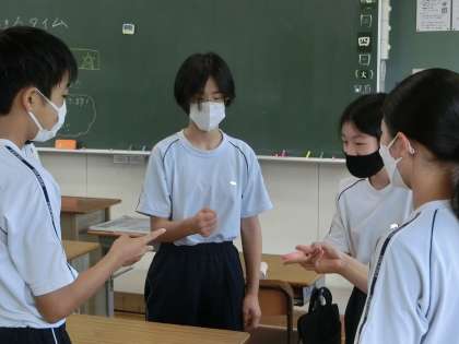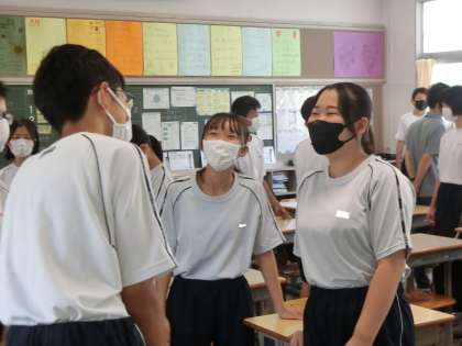 今回から学級担任ではなく、学年教師がシャッフルして教室に入って進行を務めます。それぞれの教師の個性や日頃と違う教室の雰囲気に、生徒たちの笑顔も多く見られたように思います。