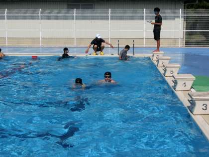 平泳ぎの泳法テストが行われていました。