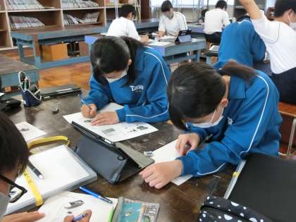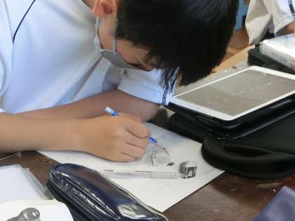 題材は「消しゴム」。自身のタブレットで撮影したものを見て、写真を鉛筆だけで模写していきます。今後は写真ではなく実物からデッサンできるよう、トレーニングは続きます。