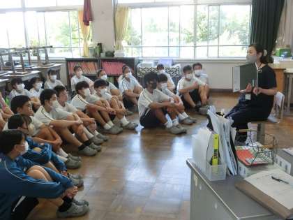 朝の活動の時間に行われたハピクロ(読み聞かせ)の時間の様子です。