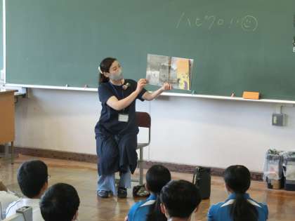 元気のよいあいさつのあと、ボランティアの方々に絵本を読み聞かせていただきました。