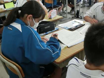 「大人になれなかった弟たちに」という物語を題材に、登場人物の心情を考える学習が行われていました。
