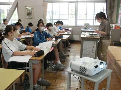 7/6 耳を英語に慣れさせる 2 公開日 2023/07/06 更新日 2023/07/06 各学年から 1年2組の英語の授業の様子です。 本文の内容を尋ねる問題に取り組んでいました。 まずは英語に耳を慣れさせるよう、繰り返し取り組まれています。