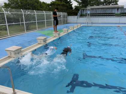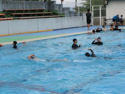 テストが終わった後も、クロールの技術をさらに上げようと練習したり、次回の平泳ぎのテストに向け、練習を始めている生徒もいました。仲間のアドバイスを受け、意欲的かつ楽しく活動に取り組んでいました。