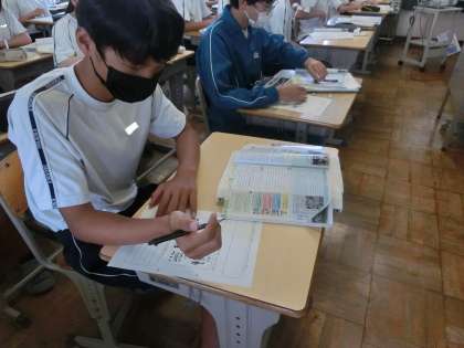 日頃気になっている人権侵害と思う行為について発表し合い、関連する法律などを学んでいました。