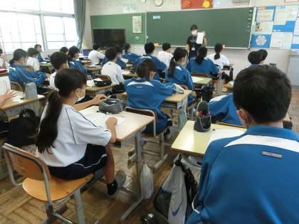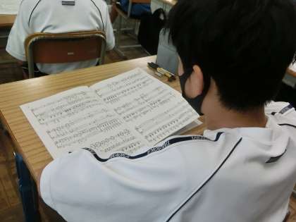 秋に行われる合唱コンクールの発表曲が決まり、楽譜や歌詞を読み込んだり、コンクールに向けての意気込みなどを考えていました。