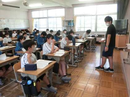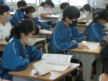 秋に行われる合唱コンクールの発表曲が決まり、楽譜や歌詞を読み込んだり、コンクールに向けての意気込みなどを考えていました。