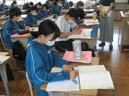 三浦哲郎さんの「盆土産」を題材にして、「父親の愛情が分かる描写をとらえよう」のテーマで内容読解の学習が進められていました。