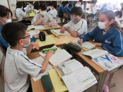「大人になれなかった弟たちに…」を題材にして、登場人物の「僕」の思いを考える授業が展開されていました。