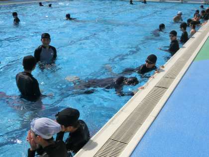 平泳ぎの美しいフォームでの泳法をマスターするため、一生懸命練習に取り組んでいました。
