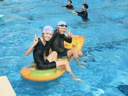 平泳ぎの美しいフォームでの泳法をマスターするため、一生懸命練習に取り組んでいました。