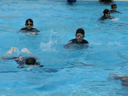 平泳ぎの泳法テストが行われていました。
