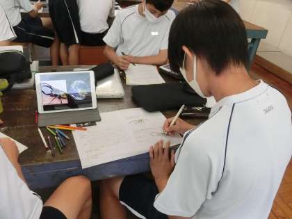 オリジナルの空想画を製作するためのアイデアスケッチを描き込み、いよいよ本格的な作品づくりが始まりました。