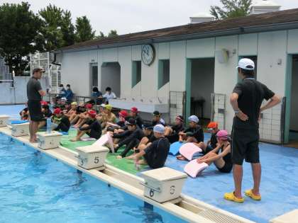 クロールのきれいな泳法をマスターするため、仲間と協力して練習に取り組んでいました。