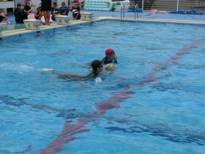 すでにマスターしている生徒は、平泳ぎや背泳ぎの練習にも取り組んでいました。