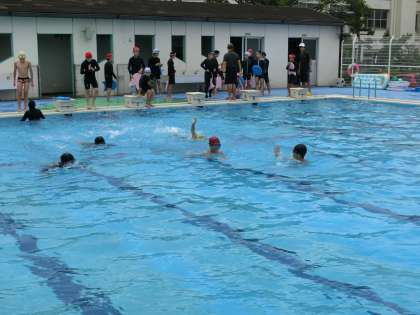 すでにマスターしている生徒は、平泳ぎや背泳ぎの練習にも取り組んでいました。