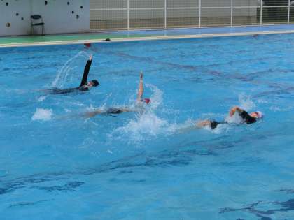 すでにマスターしている生徒は、平泳ぎや背泳ぎの練習にも取り組んでいました。